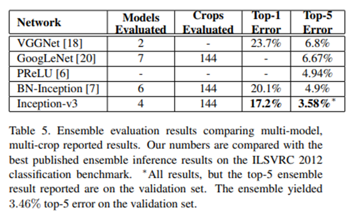 여기서 Inception V3가 언급되는데 V2 구조에 각종 기법을 추가해 성능을 측정하고 최고 성능을 나타내는 모델을 V3로 명시했습니다.