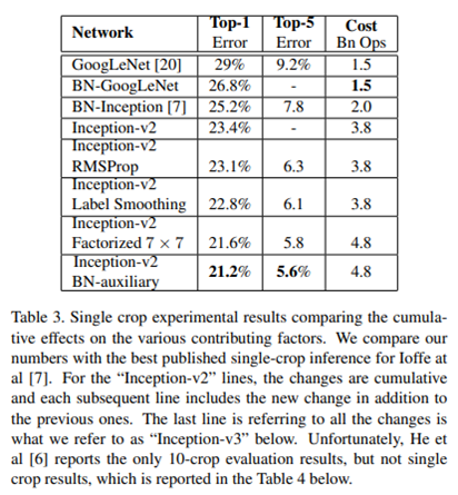 이 표에 있는 마지막 V2가 V3라고 언급합니다. 그래서 V3는 RMSProp, Label Smoothing, Factorized 등이 다 적용된 V2라고 생각하면 될 것 같습니다.